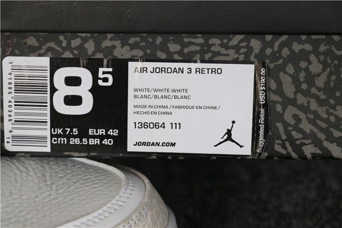 Authentic Nike Air Jordan 3 Retro Triple White